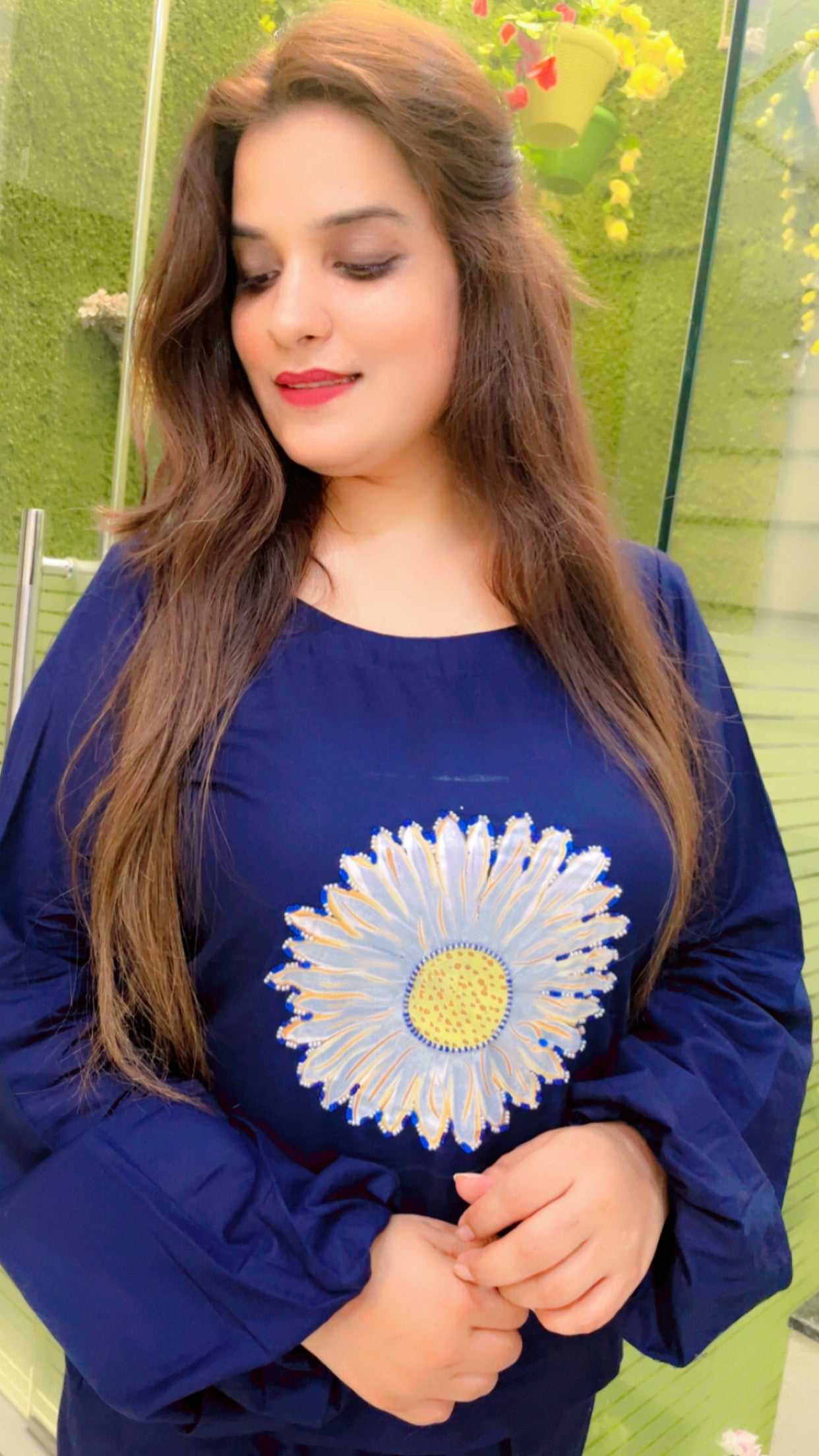 No more need to get exhausted looking for designer collection in malls or exhibition. Because one-of-a-kind and unique collection is now available at the convenience of your door step.Hand-Painted Co-ord on fine linen cotton in a glorified dark blue shade.Wow-some fits for your favorite occassions.
