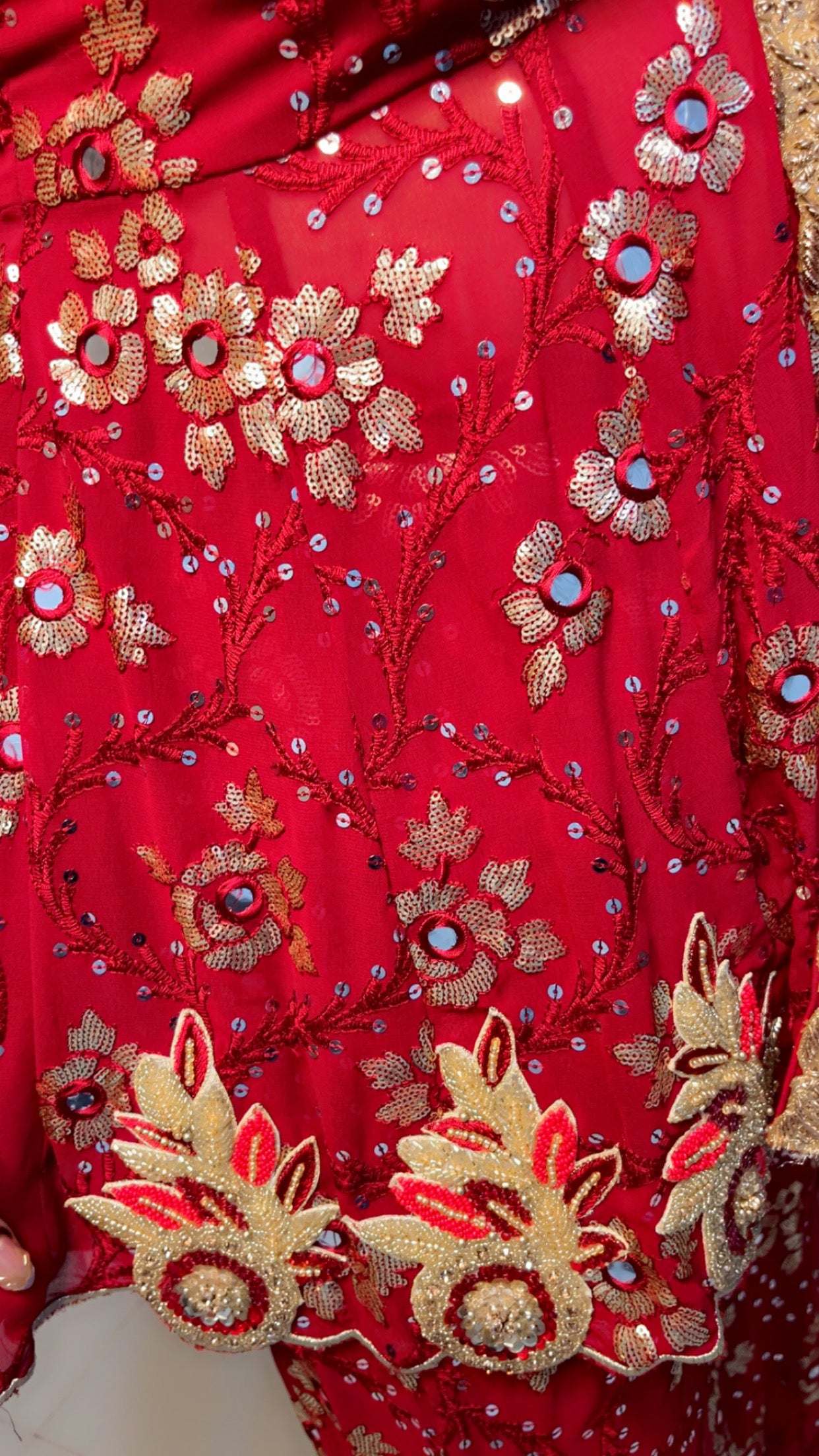 Brand New Fit added to the designer range of our festive wears. Premium ethnic and wedding collection featuring peplum style pattern over mirror-worked fabric highlighted with an antique worked neckline and floral embroidered work flair in a front-cut designing along with plazo having panels overall.
