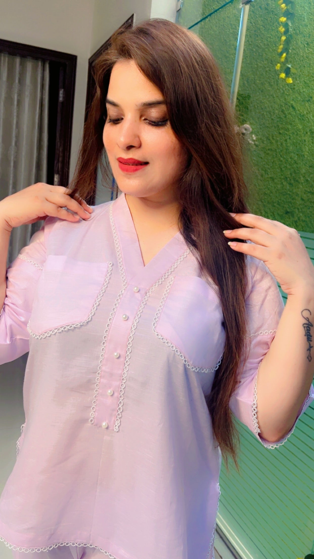 Lavender is a way to express perfection.Feeling damn cool wearing this linen comforting shirt and short knicker style co-ord in a refreshing lavender colour.Apt for late night drives and ice-cream party after dinner.