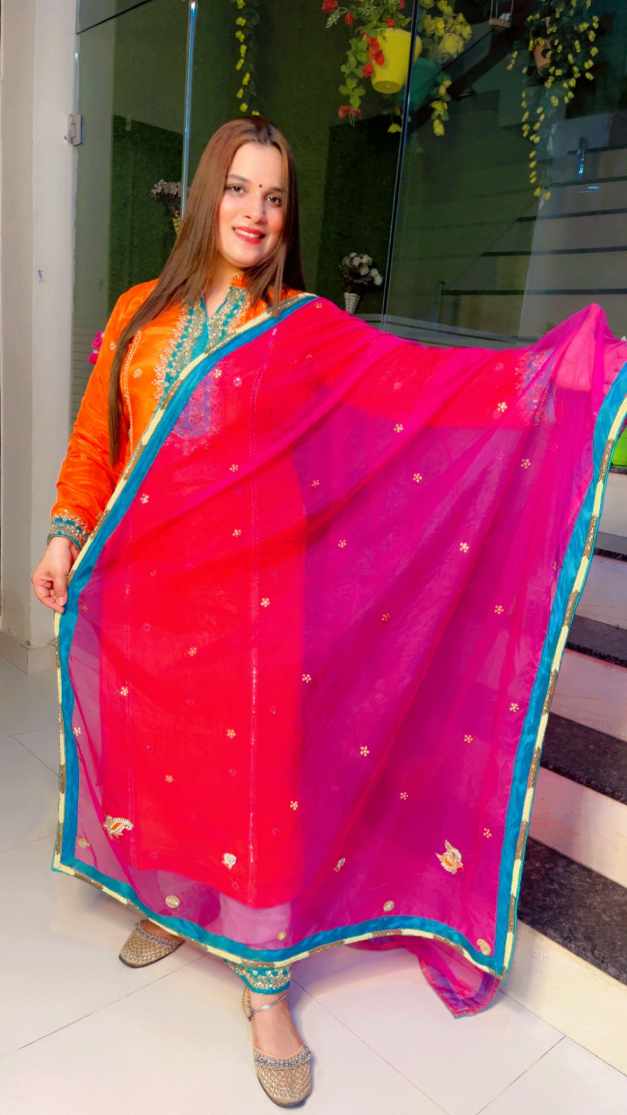 Embroidered Pakidtani Style Pure Crepe Suits in pastel and bright colour combinations. Teamed with lehriya style patch-worked and lace-worke dupatta. Apt for weddings and newly wed brides.